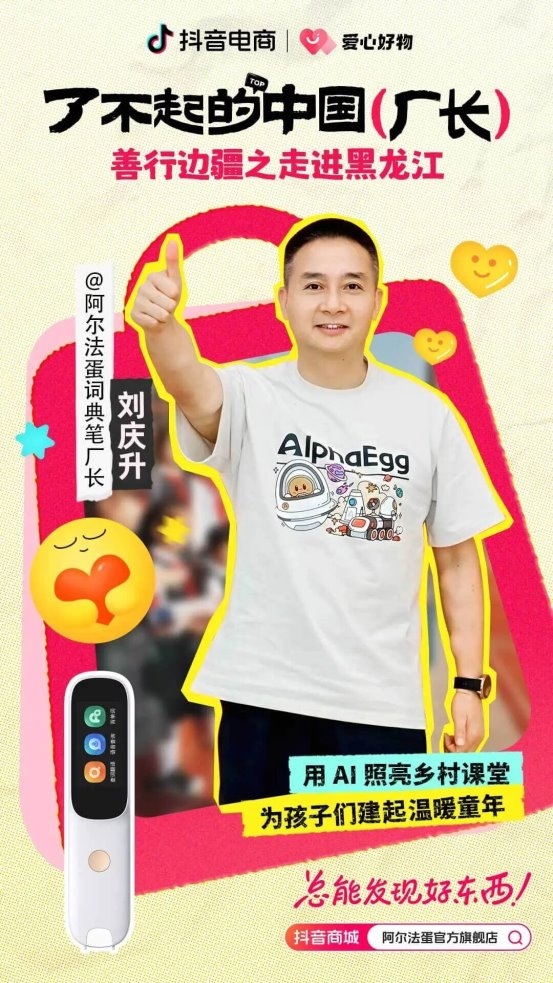 @阿尔法蛋 创始人刘庆生是一名中科大博士毕业的“高知厂长”,他带领团队深耕儿童人工智能领域20年,申请了600多项知识产权,打造出了陪伴机器人、AI学习助手、益智机器人等一系列智能产品。在“了不起的中国厂长”IP活动中,他的匠心坚守被更多人所知。如今,他带着这份初心从安徽金寨走到云贵高原,借用科技AI的力量照亮乡村课堂。致力于用科技传递温暖的他,也积极参与了本届“善行边疆”暖冬公益活动,以科技为名,为孩子们送去一份别样的温暖。