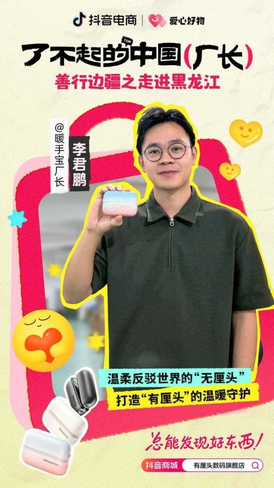 @环鼎官方旗舰店 拥有15年暖通行业经验的吕海洋,曾因“只会做产品、不会卖产品”而差点陷入经营绝境。面对500万的库存积压,他将直播间搬进了工厂,在参与“了不起的中国厂长”IP活动后,订单迅速爆发,30天累计成交2.5万单,单日GMV破百万,顺利度过了这次库存危机。早在2025年初,他便在“善行边疆”活动向西藏地区捐赠了一批水暖毯,对于此次黑龙江慈善活动,他仍用实干回应信任,捐赠出属于他的一份温暖。