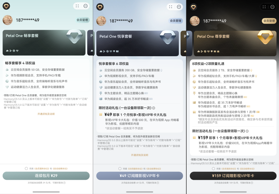 如果你也想为生活的体验做一点升级,不妨现在就从手机桌面右滑进入负一屏,搜索“Petal One或大会员”就可以进入订阅,从三个套餐中挑选适合你的用起来!现在新用户订阅悦享套餐或尊享套餐,还赠送影视VIP年卡大礼包,这个超值福利别错过,为你的每一天,订阅一份持续生效的质感生活。
