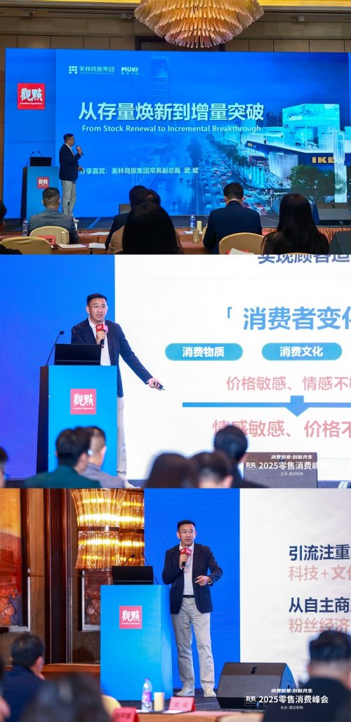 美林商旅集团常务副总裁武斌先生受邀出席了观点商业年会之零售消费峰会,并发表了名为“从存量焕新到增量突破”的主旨演讲,深入阐述了在中国商业存量过剩、消费转型、城市更新的大背景下,国内存量旧改商业面临着客群流失、业态失衡、运营低效等重重困境及转型难点。美林商管团队是如何通过专业化运营与创新思维,将旧改转型的广州美林M·LIVE天地项目(以下简称“美林天地”)打造成广州商业体人气TOP10、“旺丁又旺财”的广州超级流量场,并不断筑牢商业经营护城河。