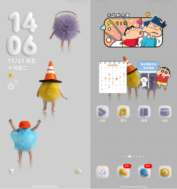 Petal One尊享套餐的高品质体验,还不至于此,更延伸至个性化的表达。我用套餐里包含的华为主题会员,为手机桌面进行了一番精心的“视觉焕新”趣味改造——请来软萌的“毛球乐团”驻场,再灵活叠加以自由搭配的“百变卡片”,高效实用之余,风格也是独一无二。如今,每一次点亮屏幕,都像开启一个独特的“心情开关”,每次触碰,都有一份专属的愉悦感扑面而来。
