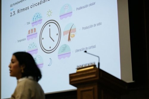 药学院教授以细胞科学为切入点,系统讲解肌肤昼夜节律的核心原理。教授指出,肌肤细胞在白天承担防御与修护功能,夜间则进行自我再生与净化。通过实验数据,展示了细胞代谢、抗氧化能力与环境因素的关系,让嘉宾直观理解肌肤节律管理的重要性。